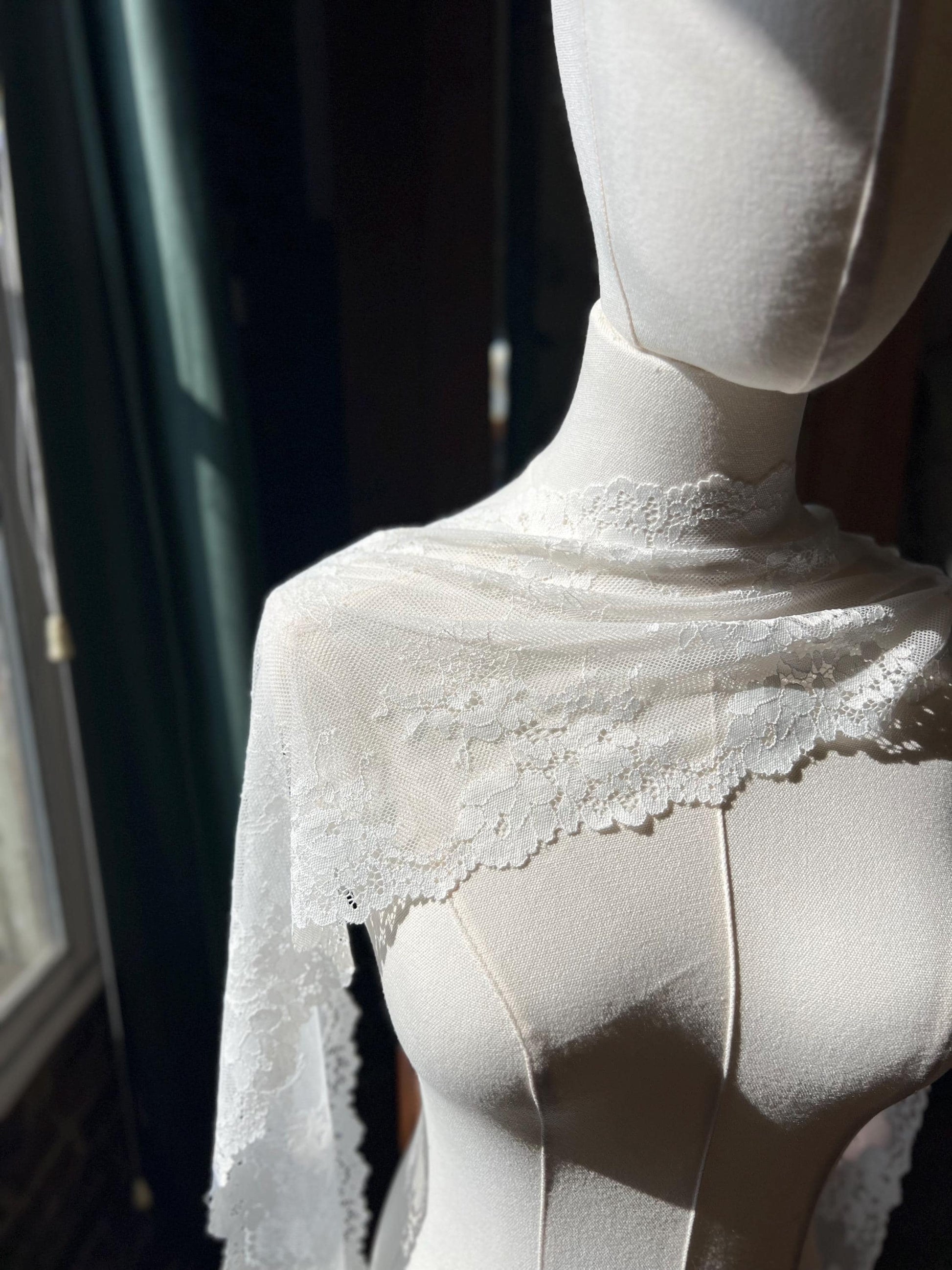 LACE EMBRACE | Lace Edge Bridal Scarf, Knee Length Wedding Shawl